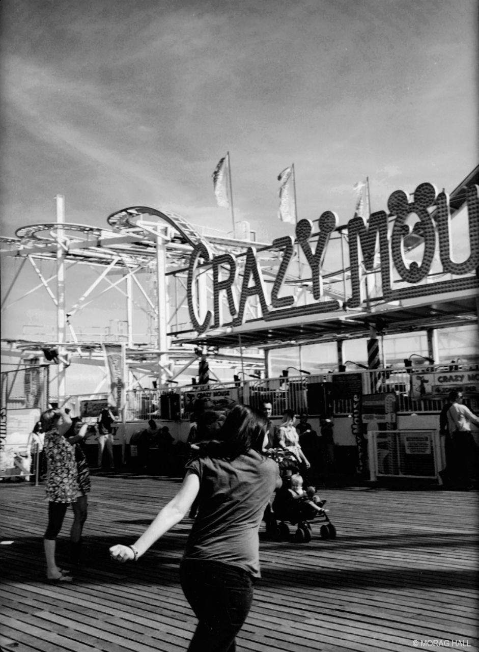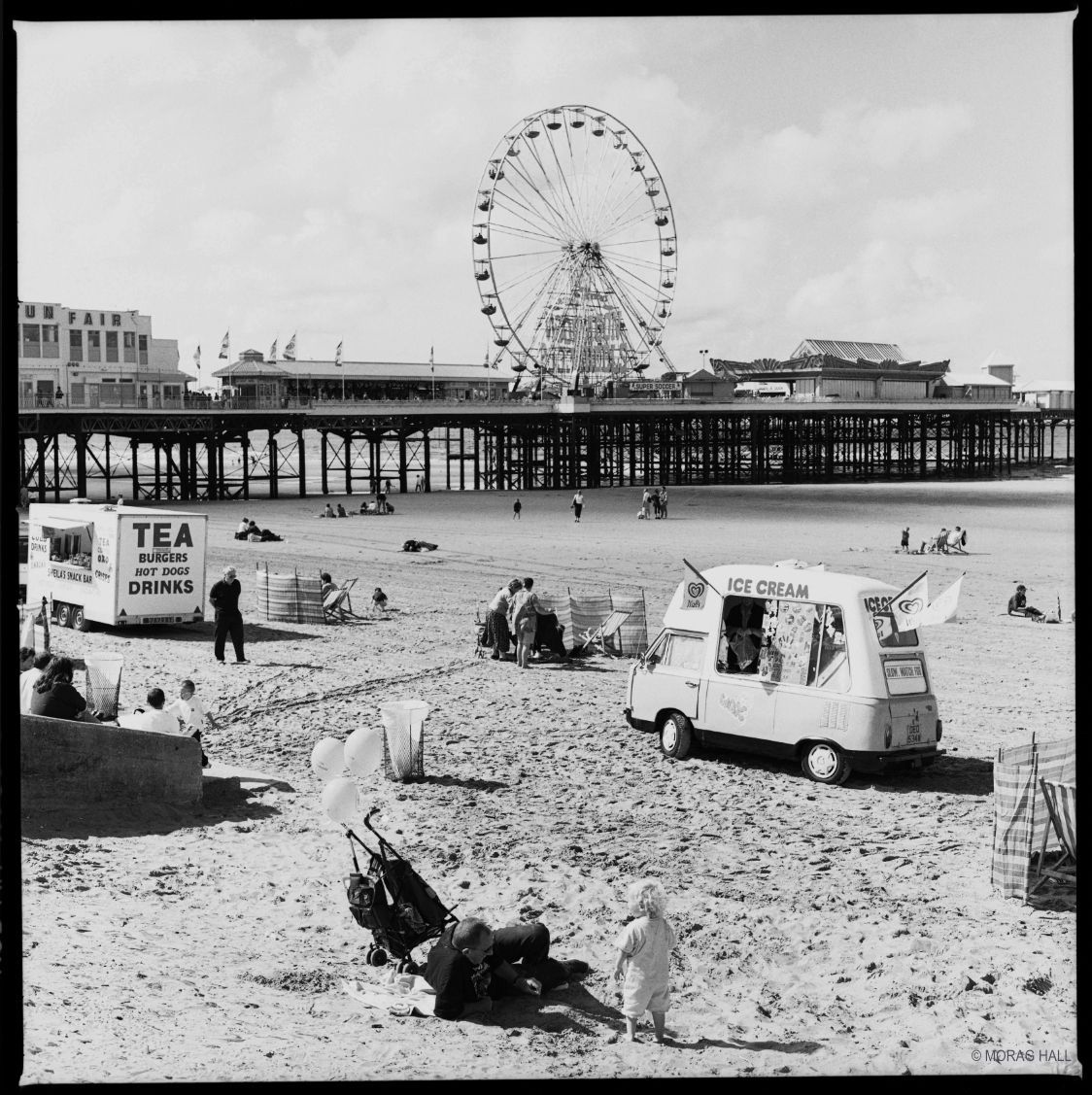The photos in the series Halcyon Days were taken in fairgrounds in Frankfurt and in the seaside towns of Blackpool, Scarborough, Bridlington and Brighton. Strange shores is a portrayal of a small town on the west coast of Scotland.